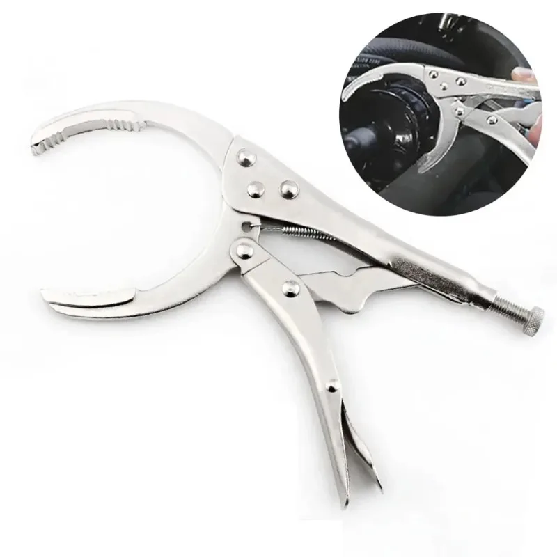 This adjustable oil filter wrench is designed to make oil filter removal quick and easy during vehicle maintenance. The clamp-style design provides a strong grip on filters for efficient removal and installation. Its adjustable mechanism allows it to fit a wide range of oil filter sizes. Made from durable materials to withstand heavy-duty automotive repair work. Ideal for car maintenance, oil changes, and general engine service tasks. The ergonomic design allows comfortable handling and improved control. Suitable for both professional mechanics and DIY car owners. Compact size makes it easy to store in toolboxes or garages. The strong grip helps prevent slipping while loosening tight filters. Keep your vehicle maintenance simple and efficient with this versatile oil filter wrench.